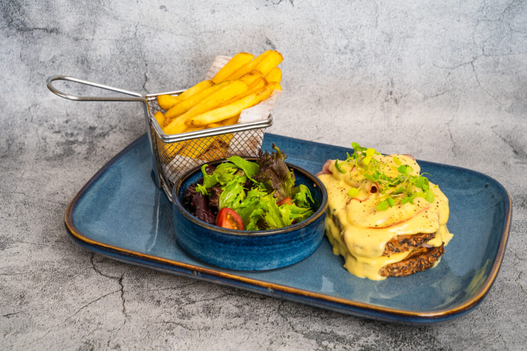 Classic ham & cheese gratinated with Mornay sauce and more cheese!